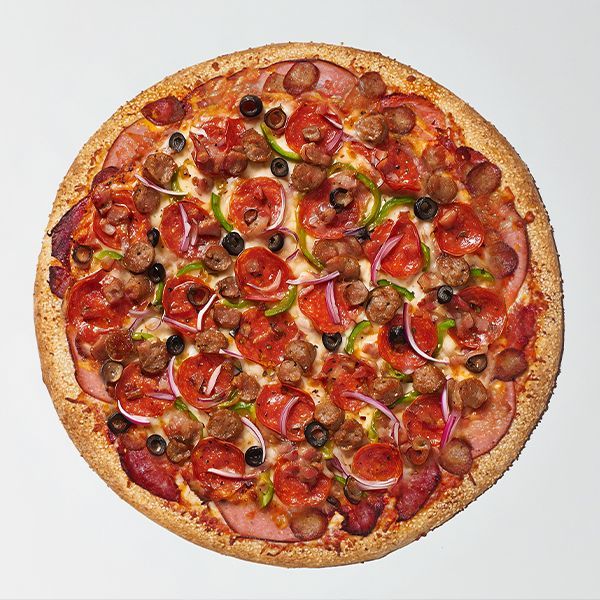 Tomato Sauce, Mozzarella, Ground Beef, Pepperoni, Ham, Salami, Italian Sausage