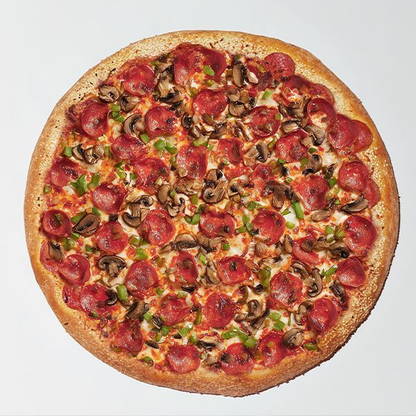 Tomato Sauce, Mozzarella, Cheddar, Pepperoni, Mushrooms, Green Pepper