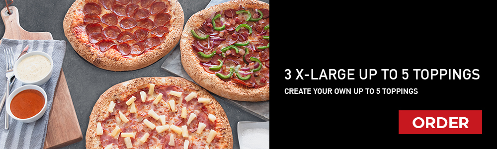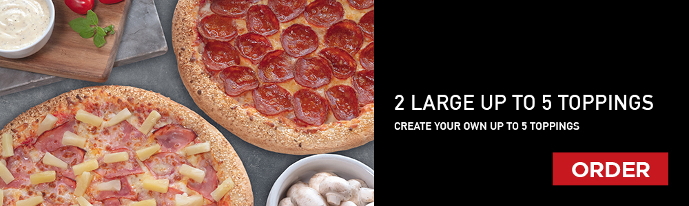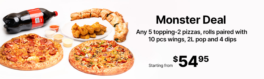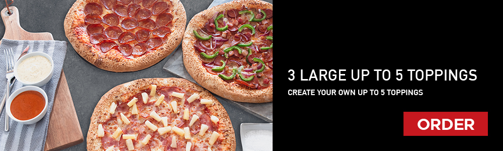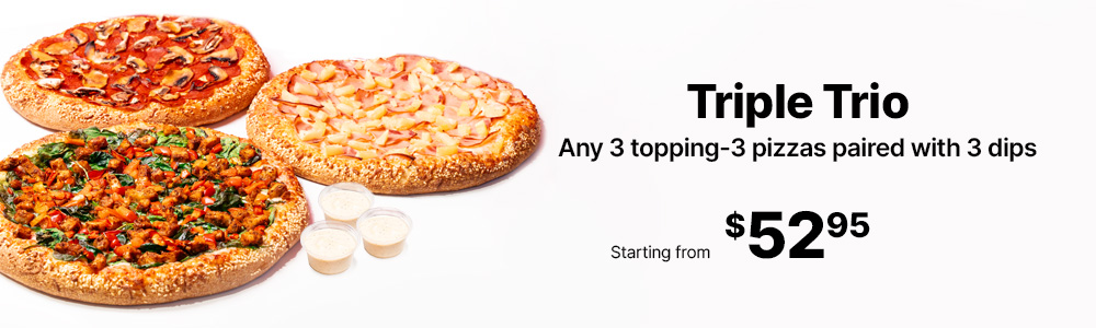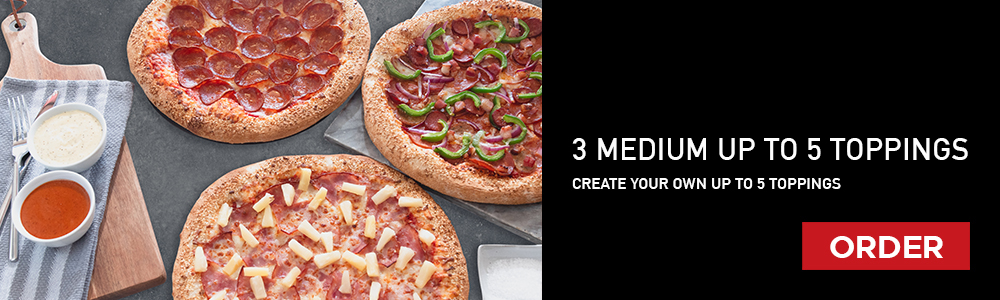 Original Crust, Tomato Base, Mozzarella, Baby Mushroom, Green Peppers, Red Peppers, Garlic Dip,